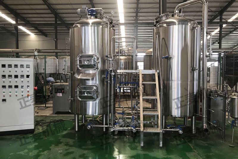 糖化系統(tǒng)是由糖化煮沸鍋、過濾槽、漩渦沉淀槽及工藝管道組成;糖化煮沸鍋為“蒸汽加熱式;電加熱式;燃?xì)饧訜崾健苯M成。罐體為雙層保溫方式“巖棉或聚氨酯”材料。加熱面積足夠達(dá)到麥汁煮沸蒸發(fā)量,能夠有效阻止熱能耗的外泄。罐體內(nèi)部采用國際標(biāo)準(zhǔn)不銹鋼精加工而成;外部采用不銹鋼或紫銅鏡面板組成,古樸典雅的外觀造型;即釀出美妙佳釀還有藝術(shù)品的象征。糖化煮沸鍋頂部加裝攪拌系統(tǒng)能使醪液均勻糖化;過濾槽頂部加裝耕刀系統(tǒng)保證醪液勻速過濾避免氧化。漩渦沉淀系統(tǒng);采用切線及離心力的作用能夠徹底的分離出多余的蛋白質(zhì)及雜質(zhì),達(dá)到成熟麥汁的純凈度。