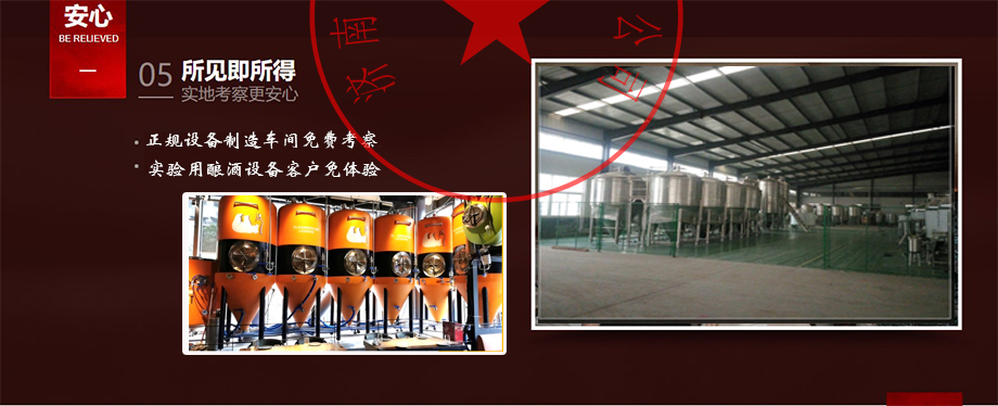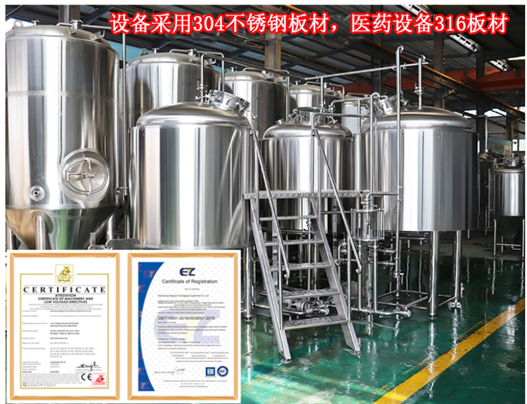 糖化系統(tǒng)是由糖化煮沸鍋、過濾槽、漩渦沉淀槽及工藝管道組成;糖化煮沸鍋為“蒸汽加熱式;電加熱式;燃?xì)饧訜崾健苯M成。罐體為雙層保溫方式“巖棉或聚氨酯”材料。加熱面積足夠達(dá)到麥汁煮沸蒸發(fā)量,能夠有效阻止熱能耗的外泄。罐體內(nèi)部采用國際標(biāo)準(zhǔn)不銹鋼精加工而成;外部采用不銹鋼或紫銅鏡面板組成,古樸典雅的外觀造型;即釀出美妙佳釀還有藝術(shù)品的象征。糖化煮沸鍋頂部加裝攪拌系統(tǒng)能使醪液均勻糖化;過濾槽頂部加裝耕刀系統(tǒng)保證醪液勻速過濾避免氧化。漩渦沉淀系統(tǒng);采用切線及離心力的作用能夠徹底的分離出多余的蛋白質(zhì)及雜質(zhì),達(dá)到成熟麥汁的純凈度。