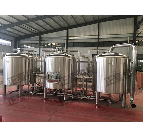 糖化系統(tǒng)是有糖化煮沸鍋、過濾槽、漩渦沉淀槽及工藝管道組成;糖化煮沸鍋為“蒸汽加熱式;電加熱式;燃?xì)饧訜崾健苯M成。罐體為雙層保溫方式“巖棉或聚氨酯”材料。加熱面積足夠達(dá)到麥汁煮沸蒸發(fā)量,能夠有效阻止熱能耗的外泄。罐體內(nèi)部采用國際標(biāo)準(zhǔn)不銹鋼精加工而成;外部采用不銹鋼或紫銅鏡面板組成,古樸典雅的外觀造型;即釀出美妙佳釀還有藝術(shù)品的象征。糖化煮沸鍋頂部加裝攪拌系統(tǒng)能使醪液均勻糖化;過濾槽頂部加裝耕刀系統(tǒng)保證醪液勻速過濾避免氧化。漩渦沉淀系統(tǒng);采用切線及離心力的作用能夠徹底的分離出多余的蛋白質(zhì)及雜質(zhì),達(dá)到成熟麥汁的純凈度。
